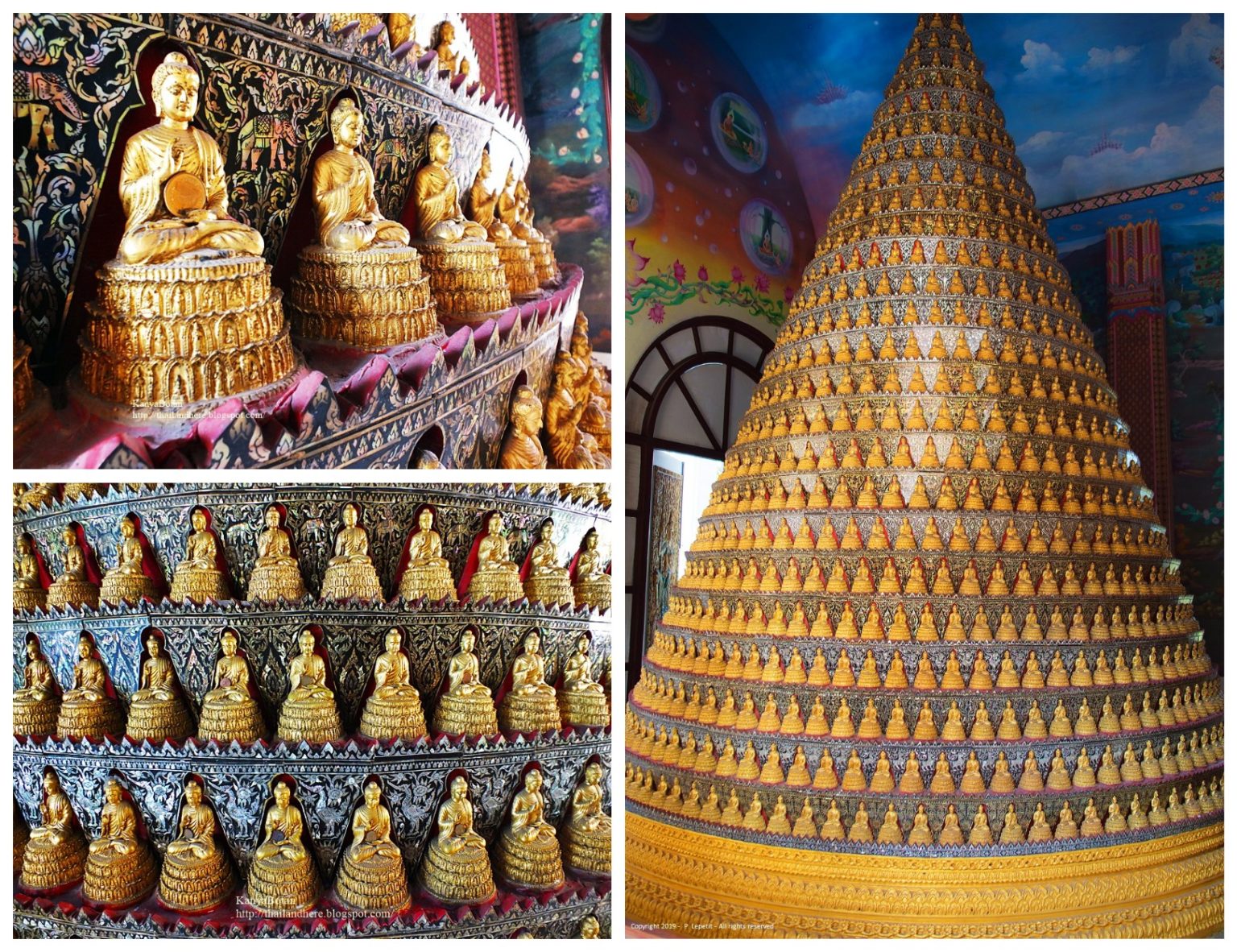 Утро начинается в храме Нага — буддийском святилище, спрятанном внутри пещеры. Стены и своды покрыты изображениями змей-нагов, в глубине горит алтарь, где монахи повязывают священные нити на удачу. Здесь же проводят традиционный ритуал-гадание, а на выходе можно купить браслет-амулет с драконом. После пещеры дорога ведёт к Ват Пхра Дхаммакая — крупнейшему буддийскому храму в мире по площади. Комплекс раскинулся на трёхстах с лишним гектарах, а в центре стоит огромная ступа-купол, покрытая статуями Будды: триста тысяч снаружи и ещё семьсот тысяч внутри — ровно миллион.