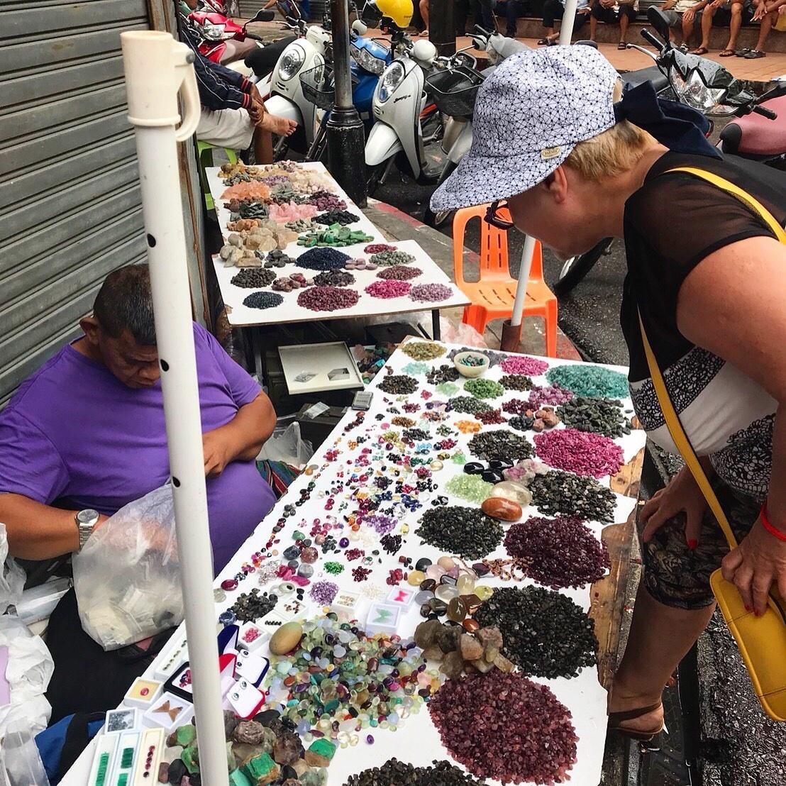 Знаменитый рынок драгоценных камней в Чантабури. Торговцы раскладывают рубины и сапфиры на столах под открытым небом. Чантабури — мировой центр огранки.