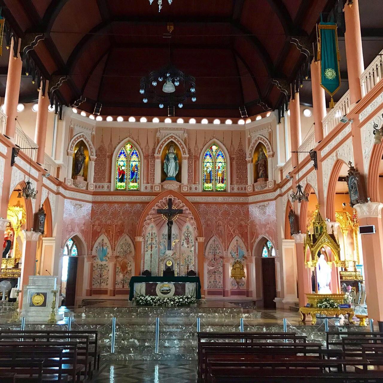Посещение красивого католического храма в Чантабури