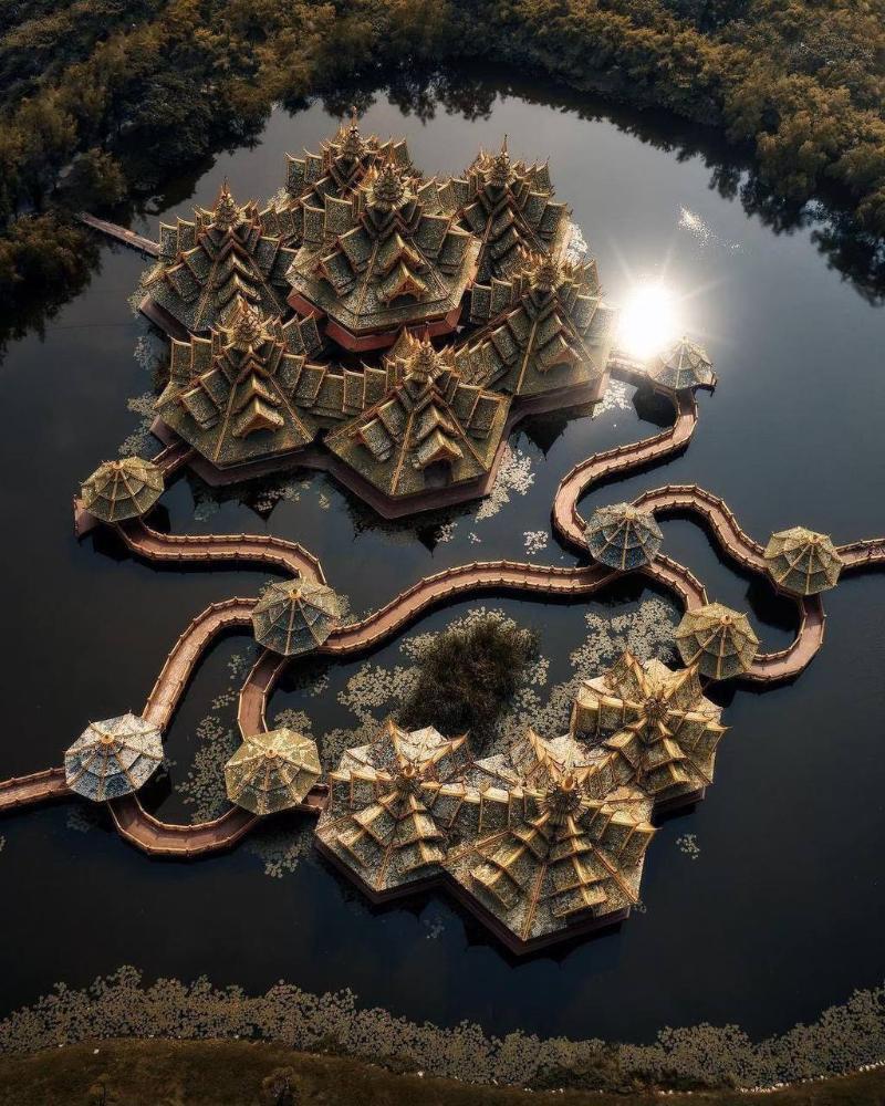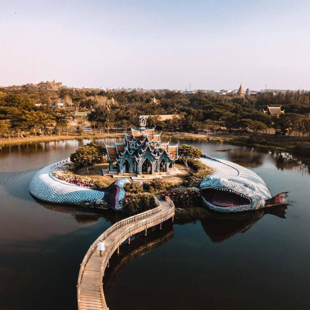Крупнейший в мире музей под открытым небом, 320 гектаров. Копии и реконструкции исторических зданий Таиланда в натуральную величину. Территория повторяет форму страны.