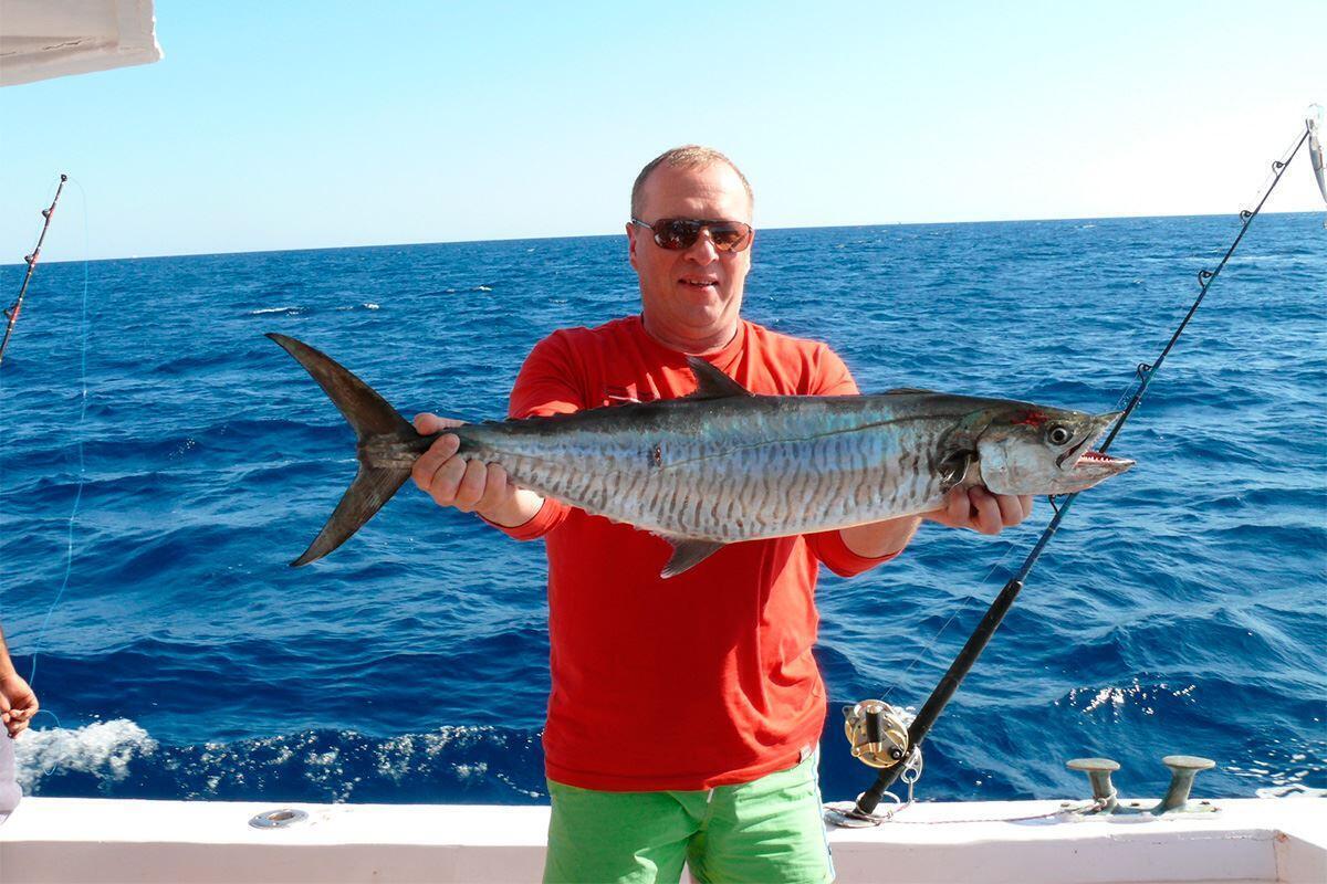 Капитан-инструктор подбирает точки по эхолоту и помогает с техникой лова. Все снасти на борту — спиннинги, удочки, наживка, ничего своего брать не нужно. Методы рыбалки зависят от условий: джиггинг, донная ловля, троллинг. В этих водах водятся барракуда, макрель, сарган, тунец, групер, скаты и другая морская рыба. Пойманную рыбу можно забрать с собой.