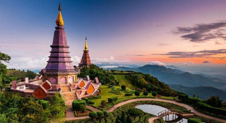 Дой Интханон — высочайшая точка Таиланда, 2559 метров. На вершине бывает даже снег. Территория вокруг — национальный парк с водопадами, двумя необычными храмами-ступами и королевским парком горных цветов.